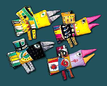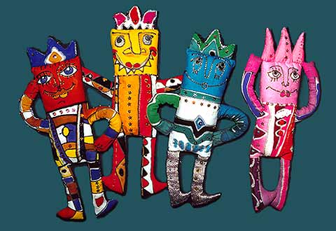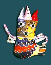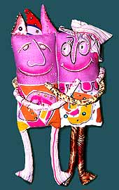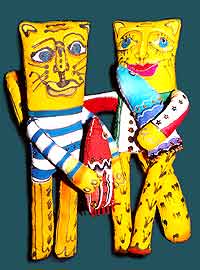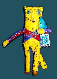 Now after You know my work I'd like to tell You about the materials and techniques I use. At first I paint my personage with special colors on the textile using the technique of cold batik. The doll size is about 20 cm.