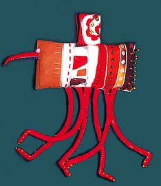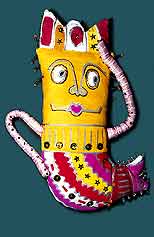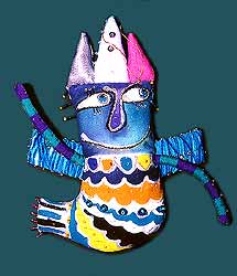 I decorate it with glass beads, golden and silver thread, tape. The most difficult ( at my sight ) is to think the character. It is not easy to explain how it comes into my head. It is possible only to wish good luck.